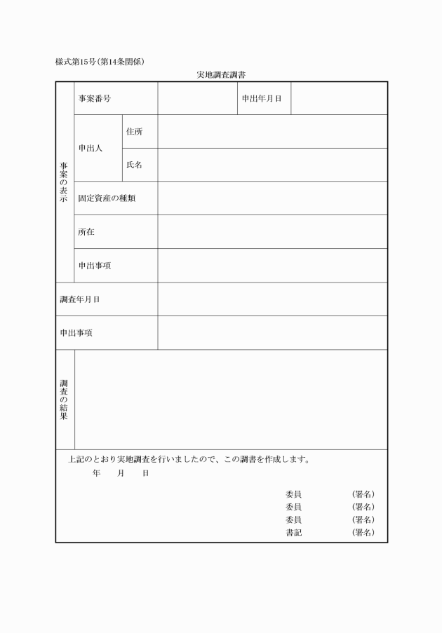 (15) 実地調査調書 様式第15号