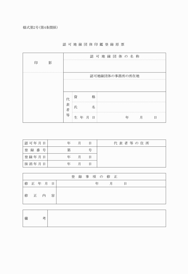 2 認可地縁団体印鑑登録証明書には次に掲げる事項を記載するものとする。