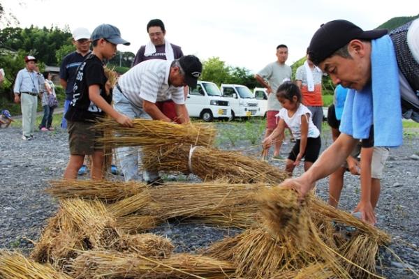 中川根南部小学校の児童は地域学習として、ここ数年毎年参加しており、地区住民の指導の下「子どもたい」(ミニたい)を製作した。